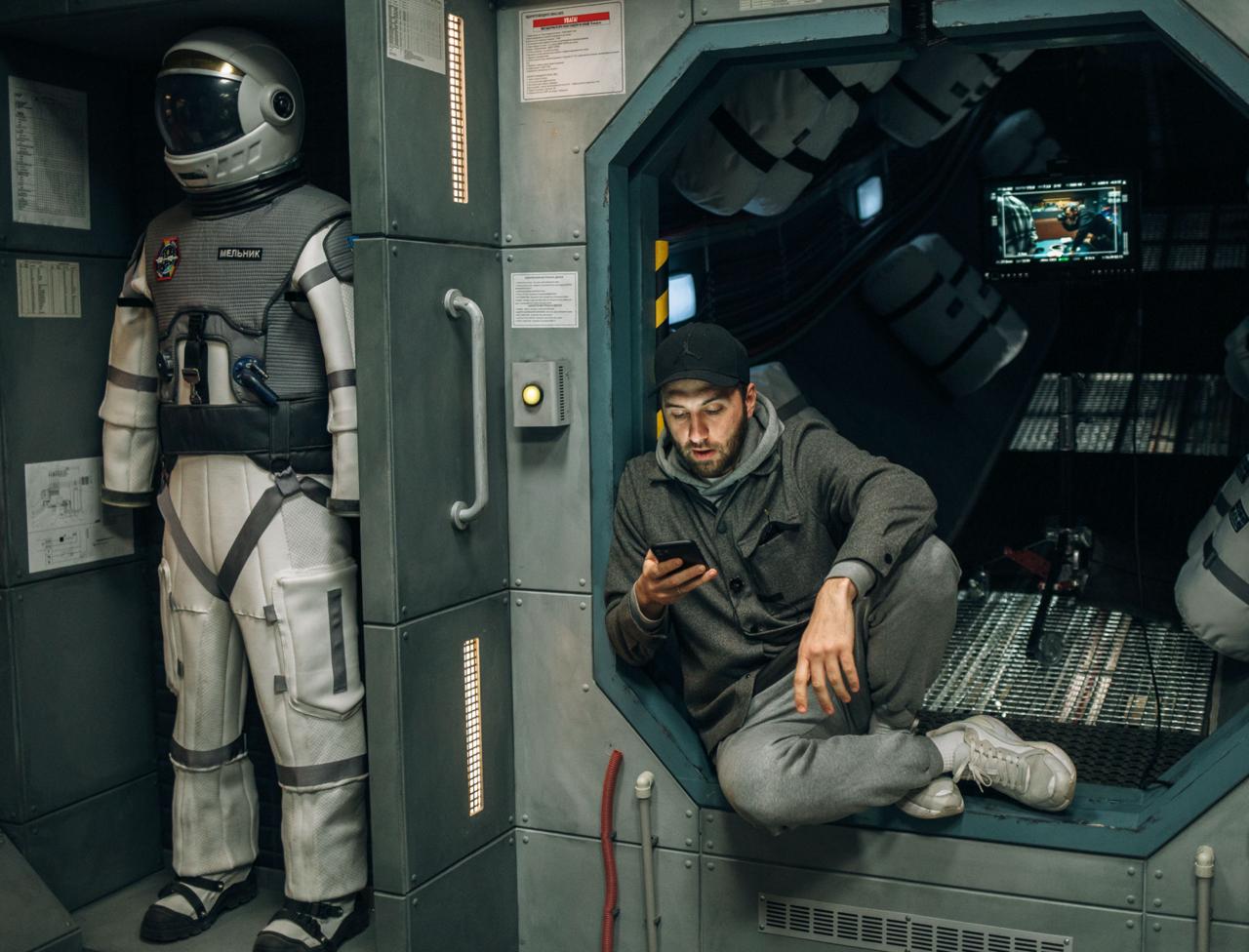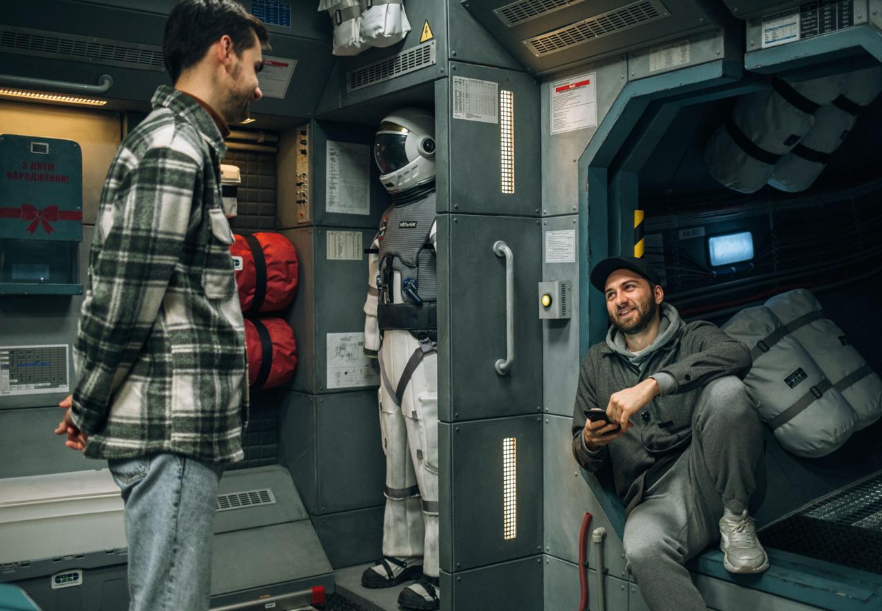 – Як ви шукали інтонацію, темп та гумор для персонажа? Це була самостійна робота чи процес партнерства разом із режисером? – Це був процес взаємодії. Перед початком зйомок був досить великий, мені здається, період репетицій і підготовок. Ми зустрічалися із Павлом Остріковим і з Вовою Кравчуком. Пробували, знаходили інтонації, підходи, як та чи інша репліка має звучати. Тому поступово. – У який момент ви відчули, що персонаж "склався"? – Буквально з перших репетицій у Павла було чітке уявлення, що це має бути. Воно збіглося із моїми думками. Тому, я думаю, досить швидко ми змогли намацати правильно персонажа. – Яким був режисерський запит щодо характеру Максима? – Запит був, я думаю, який... Збігся з моїм баченням, що це не має бути робот та комп'ютерна мова. Так, звісно, ефект потім наклали, але загалом це живі репліки. Це те, що зараз робить фактично штучний інтелект, як він намагається тобі відповідати у твоєму ж стилі. От так само, мені здається, і робот Максиму відповідає відповідно до персонажа Андрюхи.