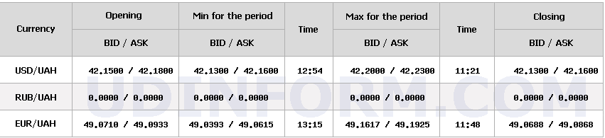 На міжбанку сьогодні курс знизився на 2 копійки - до 42,13-42,16 гривень за долар (купівля-продаж) порівняно із закриттям торгів 8 грудня.