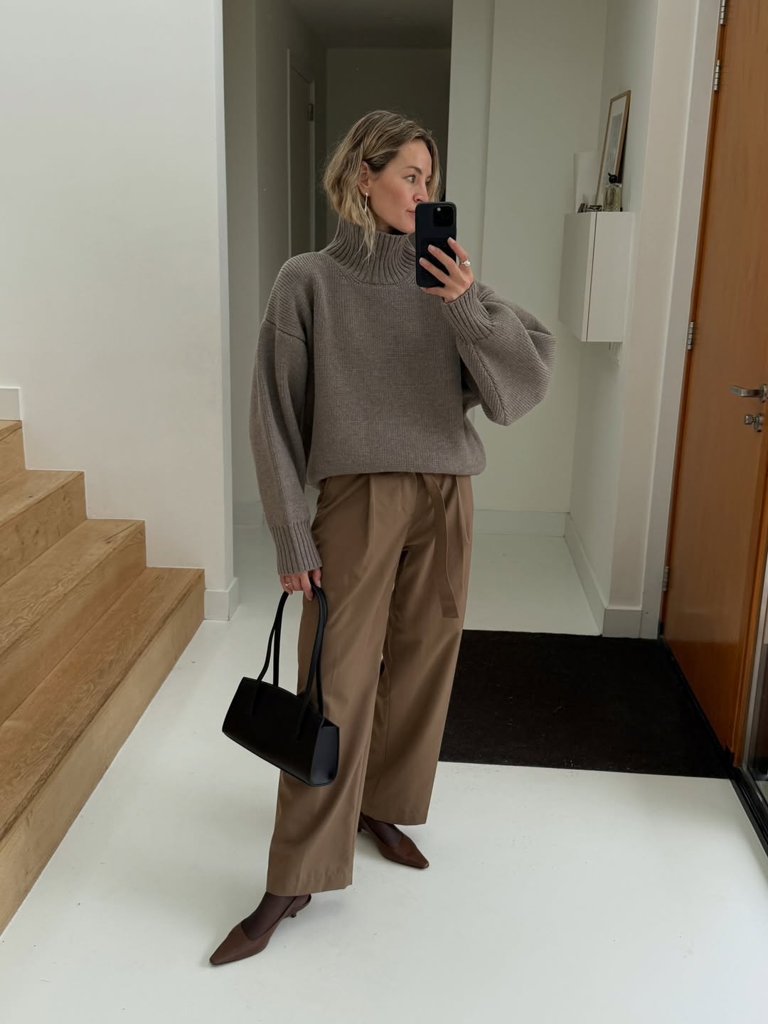 Однотонний светр (фото: instagram.com/anoukyve) Їх носять у поєднанні з класичними штанами, джинсами, спідницями або під піджаки. Кашемір додає образу м’якості та вишуканості, водночас залишаючись практичним вибором для холодної погоди.