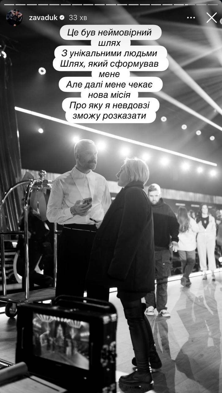 Володимир Завадюк звільнився з "плюсів" (скріншот) Також у сторіс Завадюк підбив підсумки своєї роботи в компанії, назвавши цей період важливим етапом особистого та професійного становлення. Він сказав, що шлях у компанії був пов’язаний зі співпрацею з унікальними людьми й суттєво вплинув на нього як на фахівця. Водночас продюсер натякнув на початок нового етапу в кар’єрі, деталі якого пообіцяв оприлюднити згодом. "Це був неймовірний шлях. З унікальними людьми. Шлях, який сформував мене. Але далі мене чекає нова місія, про яку я невдовзі зможу розказати", - написав Володимир.