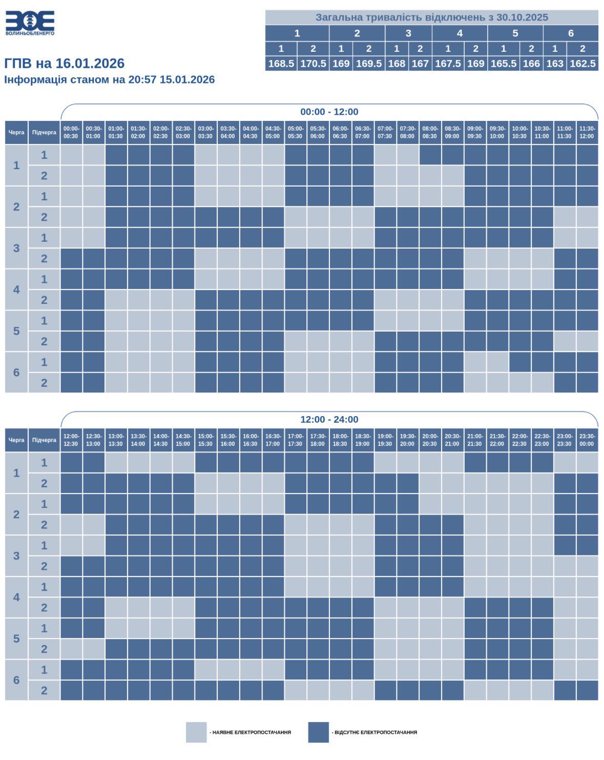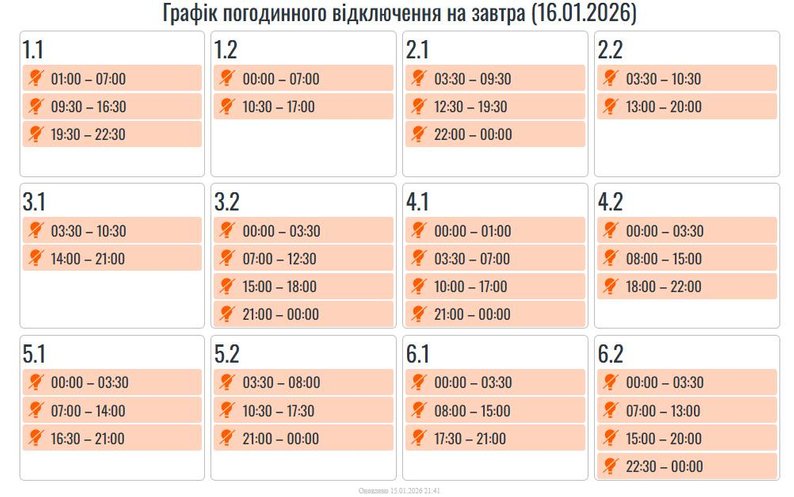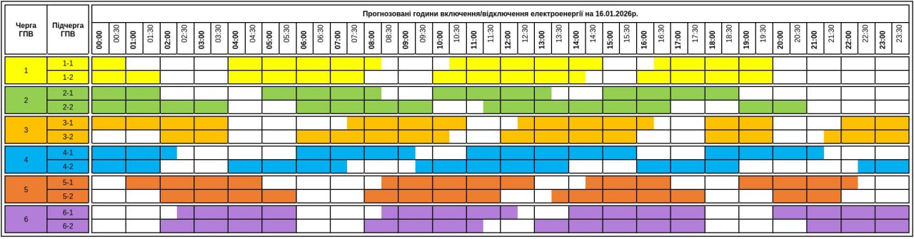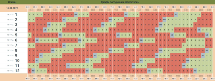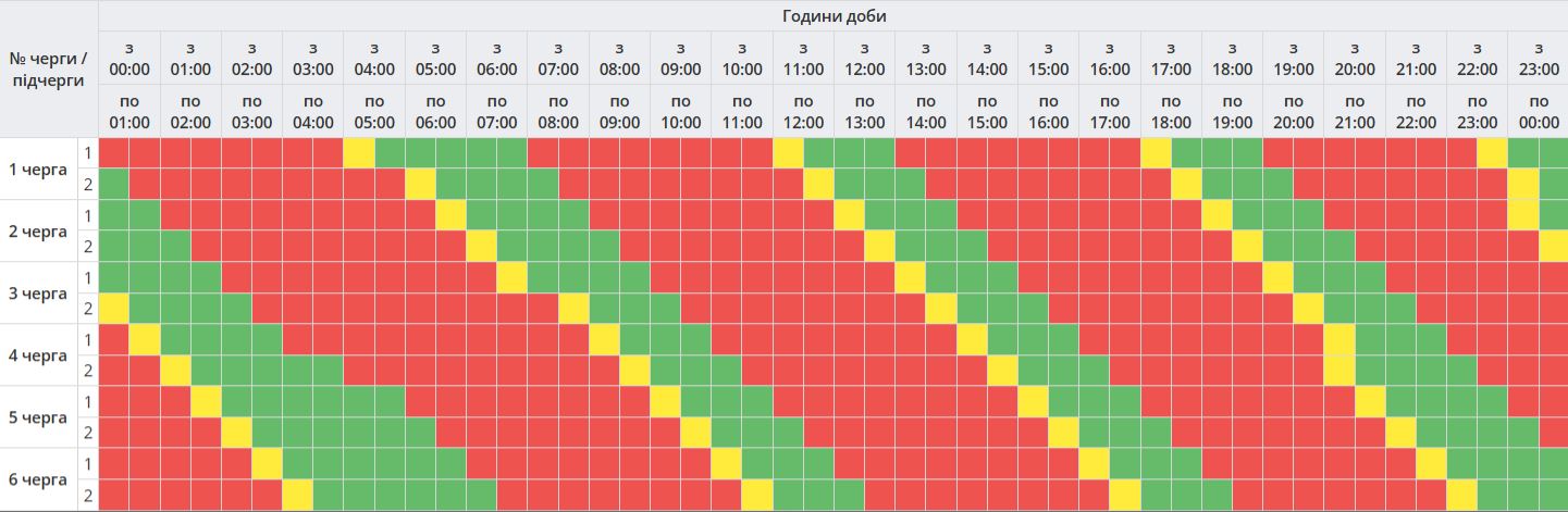 Кожна група буде без світла орієнтовно вісім годин на добу.