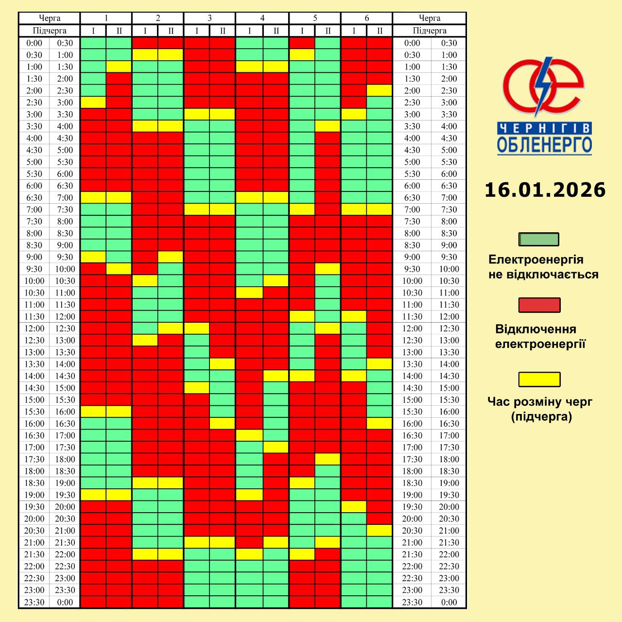 - з 00:00 по 07:00 запроваджений в обсязі 3.5 черг;