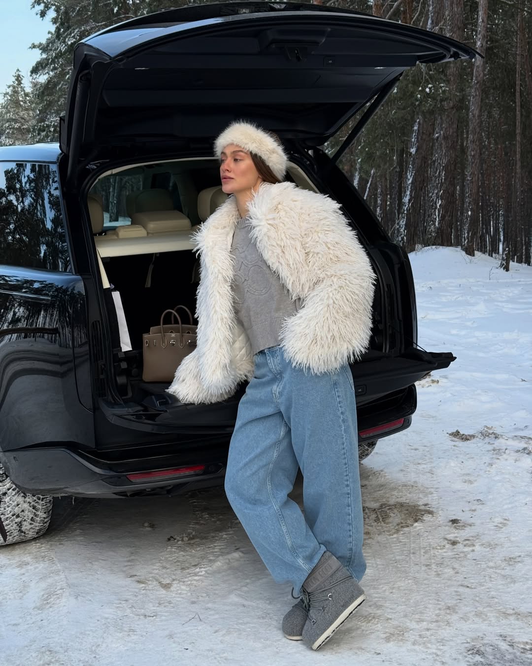 "Лук" Надін - наочний приклад того, як екохутро може бути ключовим елементом зимового гардероба.