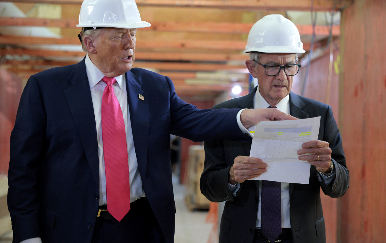 Фото: Дональд Трамп коментує Джерому Пауеллу проєкт реновації будівлі ФРС (Getty Images)