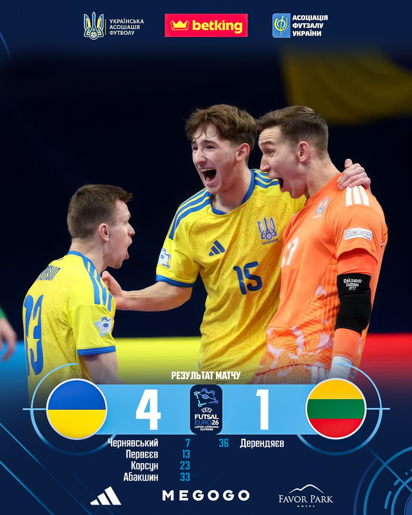 Україна розбила Литву, але втратила шанс стати першою: турнірна таблиця Євро-2026 з футзалу