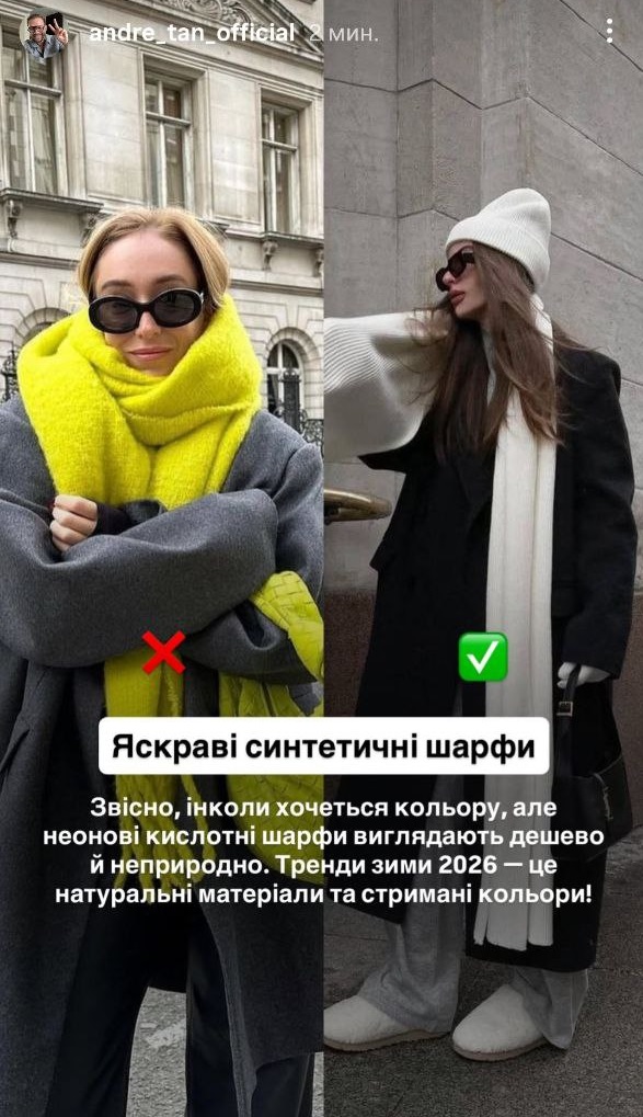Андре Тан назвав аксесуари, які псують зимовий образ у 2026