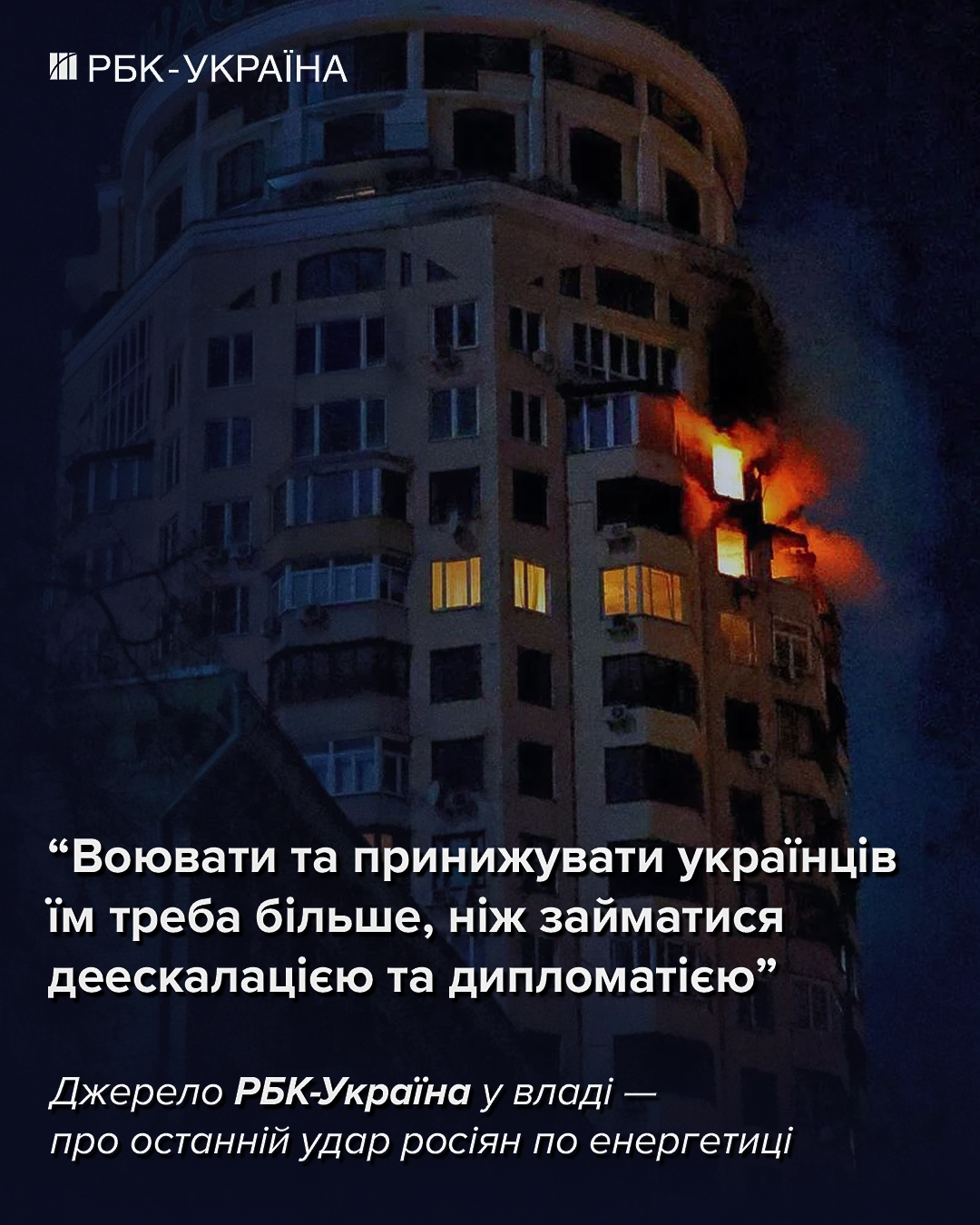 "Якщо росіяни не змогли втриматися від спокуси скористатися холодними днями - це свідчить про все",- говорить РБК-Україна співрозмовник у президентському оточенні, коментуючи найпотужніший удар РФ по українській енергетиці у 2026 році.