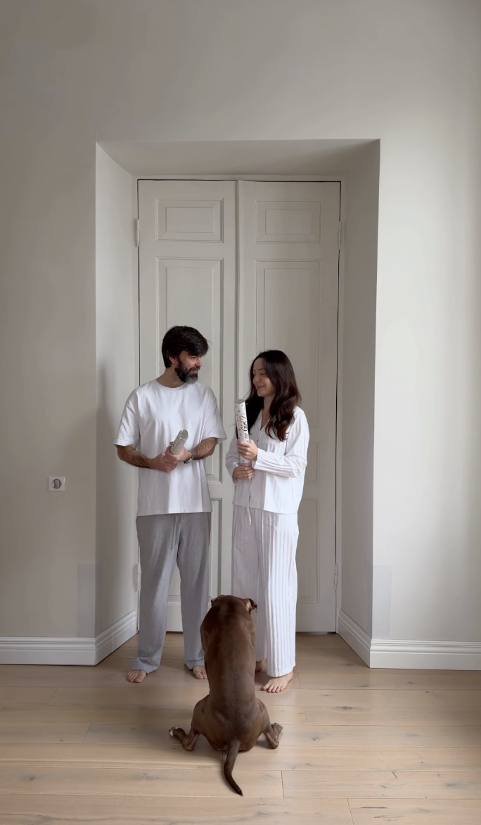 Її хлопавка "вибухнула" блакитним конфеті, а пес кумедно перелякався й намагався втекти. Втім, жартома зазначила Ксюша, жоден пес під час зйомок не постраждав.
