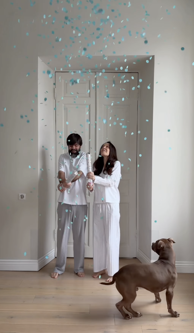Блогерка та її коханий тримали у руках хлопавки, які розкривали стать дитинки за кольором конфеті. І виявилося, що Манекен чекає на хлопчика.