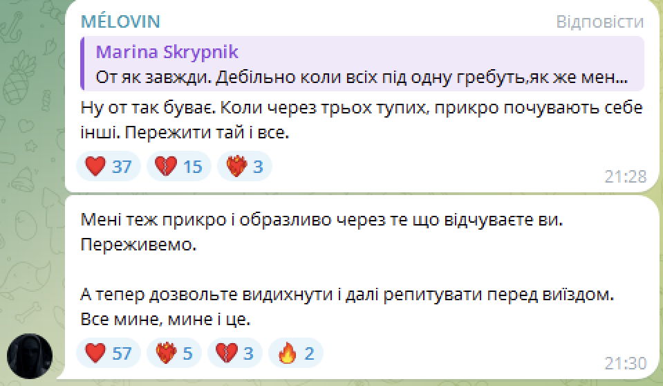 MELOVIN звернувся до фанів (скриншот: t.me/bighousemelovinators)