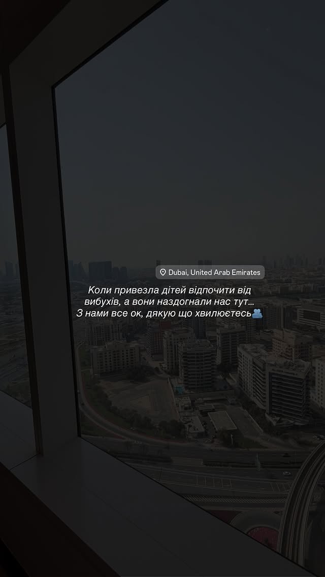 "Коли привезли дітей відпочити від вибухів, а вони наздогнали нас тут. З нами все ок, дякую, що хвилюєтеся", - написала співачка в сториз.
